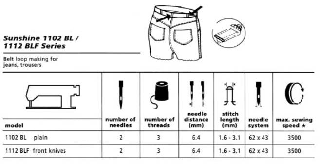 BL/ 1112 BLF - Two needle, 6.4 mm, bottom coverstitch, belt loop making machines.
